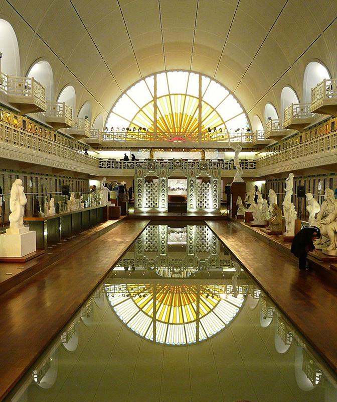 This Museum of Art and Industry, housed in a converted Art Deco swimming pool, presents a variety of collections: fine arts, sculpture, design, fashion, applied arts, textiles, etc., in a unique architectural setting with its large central pool, stained glass windows and shower cubicles converted into display cases.