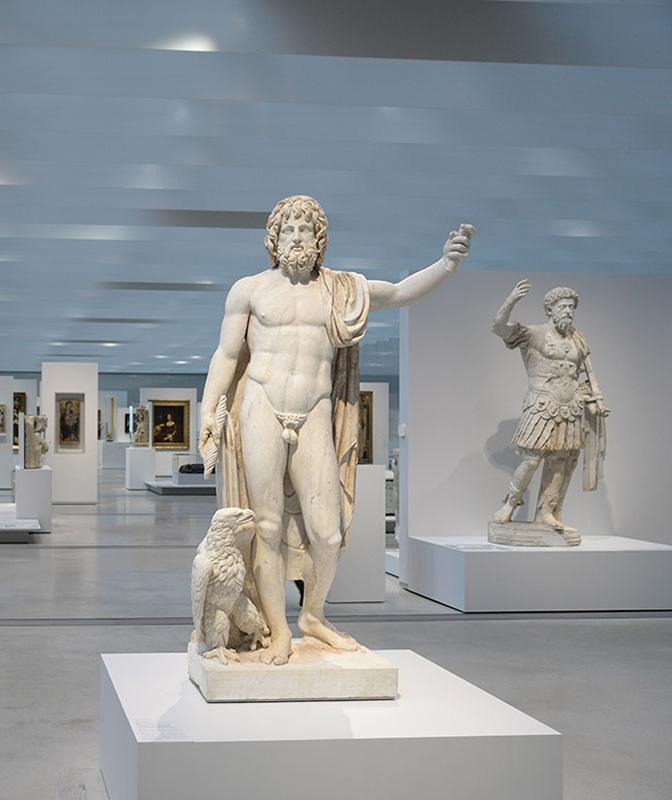 The Louvre-Lens is a branch of the Louvre located in the mining basin of Nord-Pas-de-Calais, transforming a mining wasteland into a 20-hectare landscaped park. Housed in a contemporary glass and metal building, the Galerie du Temps, the heart of the museum covering 3,000 m², displays around 250 works ranging from Antiquity to the 19th century.