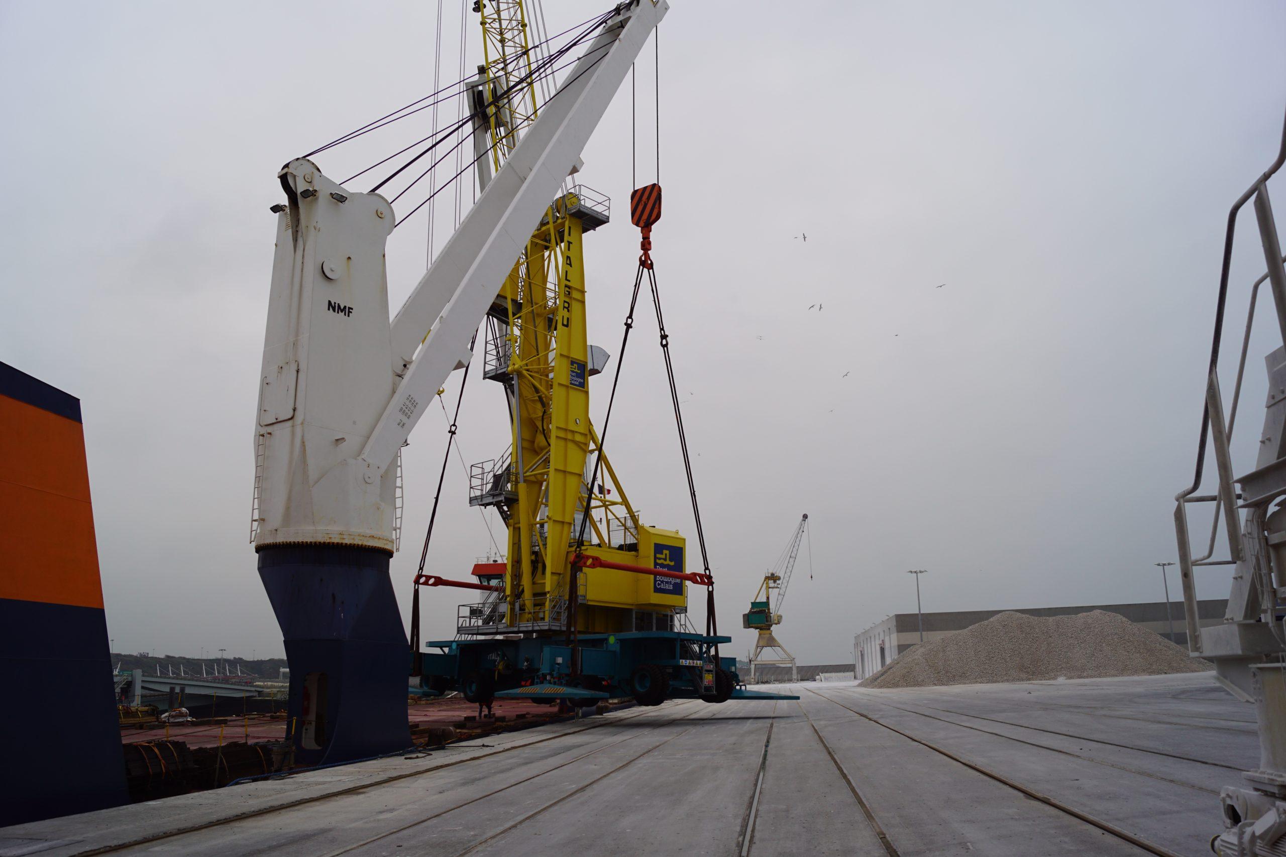 Arrivée d'une nouvelle grue au terminal de commerce à Boulogne