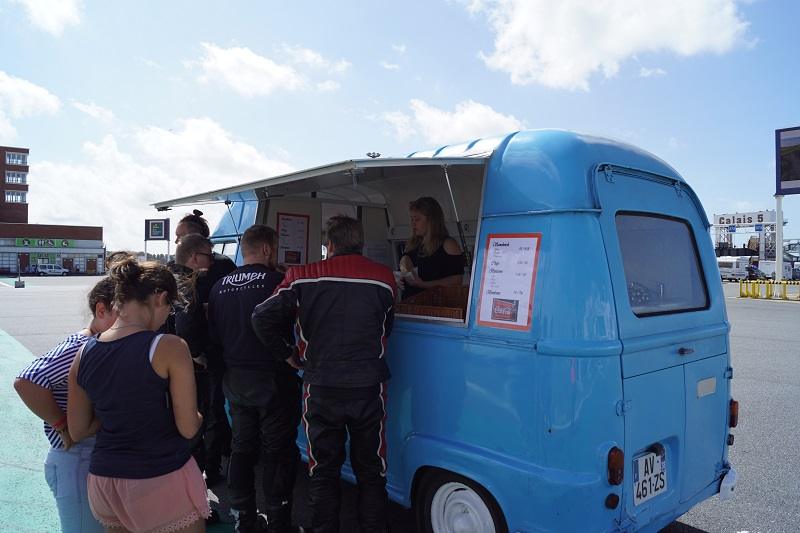 Depuis l’été, des foodtrucks vintage sillonnent le port de Calais à la rencontre des voyageurs. On peut y trouver de la restauration légère type sandwiches, croissants, friandises et boissons fraiches et chaudes pour un repas sur le pouce ou un petit déjeuner.